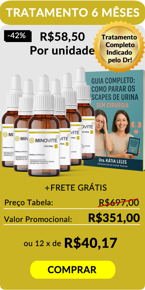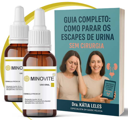 É COMPOSTO DE DUAS FRENTES: 1 - Nutracêutico em Gotas MINOVITE 2 - Livro GUIA COMPLETO: COMO PARAR OS ESCAPES DE URINA - SEM CIRURGIA